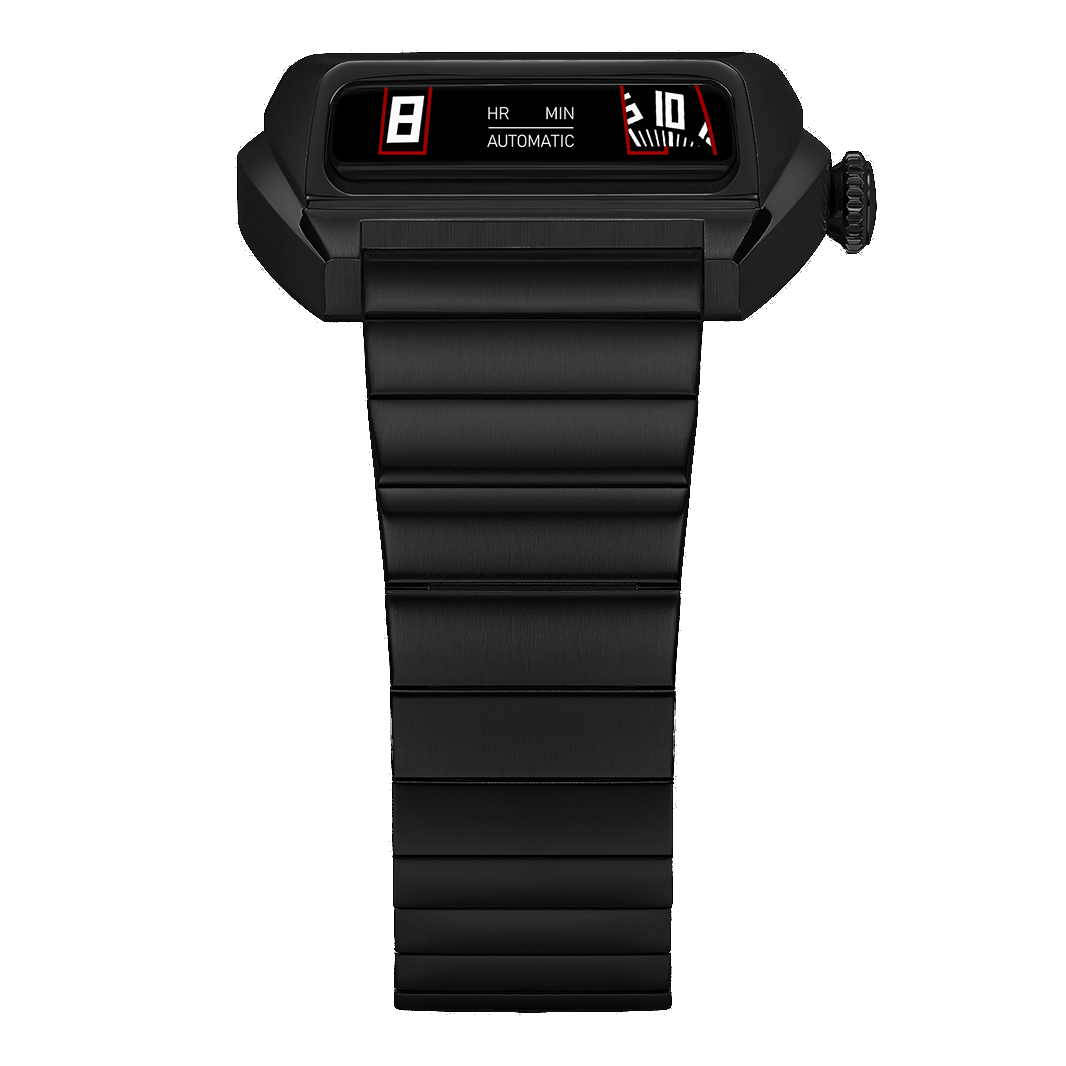 The stainless steel bracelet mirrors the RT0’s industrial-mechanical character with a polished–brushed finish and integrated clasp for a seamless wrist profile. Its solid links ensure both comfort and durability while reinforcing the watch’s bold, utilitarian appeal.