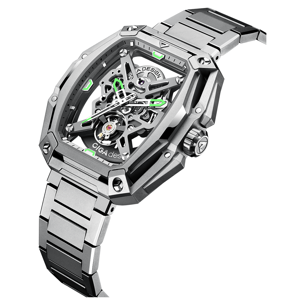 The CIGA Design Z Series Hunter embodies the relentless focus and bold spirit of those who never settle. Crafted for the modern trailblazer, this fully skeletonised watch features a striking octagonal tonneau case, an in-house CD-07 movement, and a dramatic 360° view of time in motion.