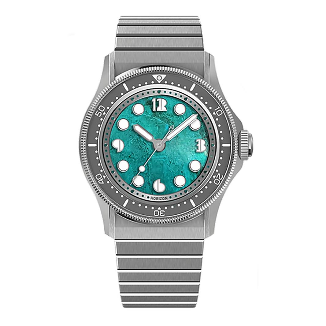 Despite the visual weight and presence of solid stone, Nemolithic retains a refined, wearable profile at just 10mm thick (excluding crystal). Each watch is paired with an improved stainless-steel bracelet featuring enhanced articulation and Horizon’s MicroSlider clasp, allowing seamless, on-the-fly micro adjustment.