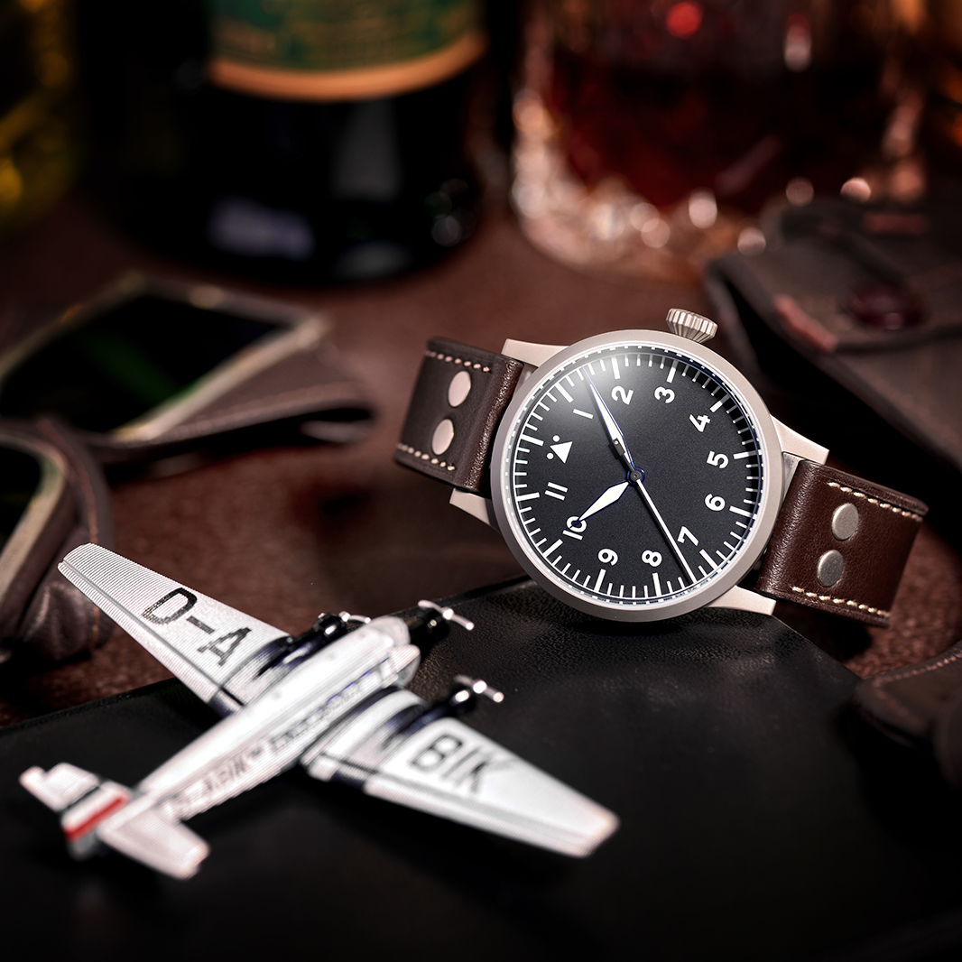 The Laco Heidelberg from the Laco Pilot Watches Original collection is a modern tribute to one of the most iconic aviation timepieces in history — the Beobachtungsuhren (or B-Uhr), used by German pilots during the 1940s. Faithfully crafted based on original specifications from the Reichsluftfahrtministerium (RLM), the Laco Heidelberg offers exceptional authenticity, quality, and aviation history on your wrist.