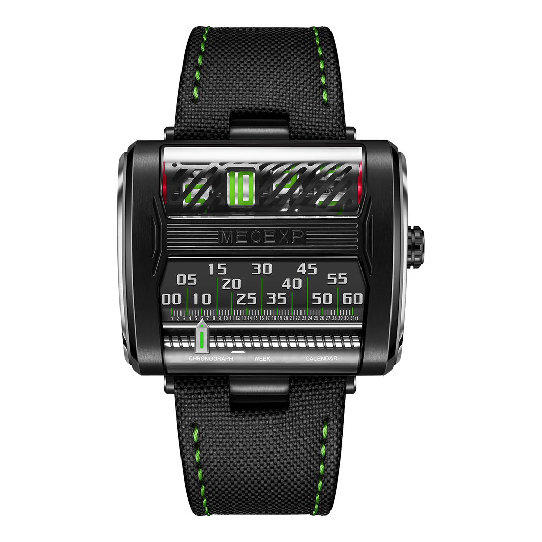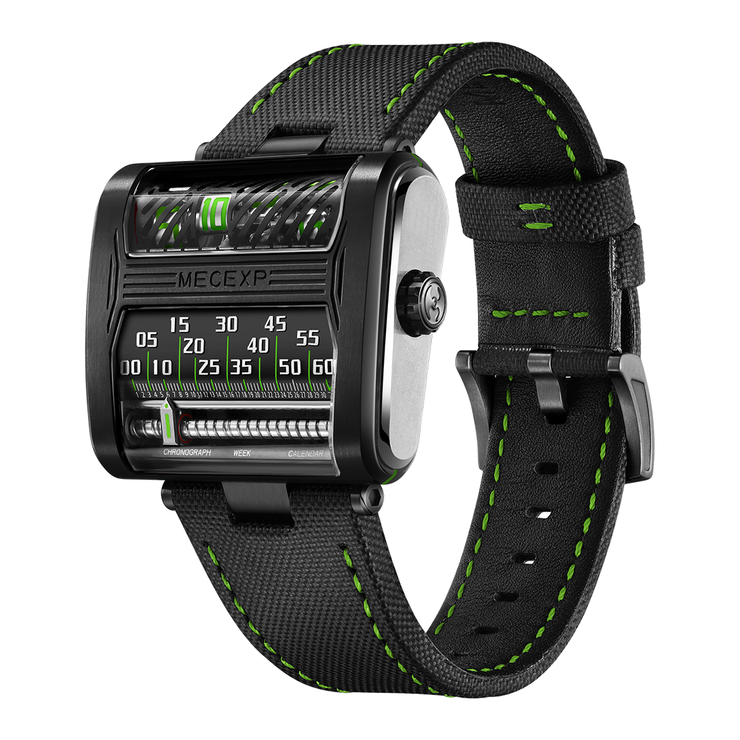 The nylon-and-leather hybrid strap ensures durability with modern comfort. Or go with the leather strap option for a more refined complement. With its industrial refinement and avant-garde presence, the MECEXP MS1002 is not just a watch - it’s a kinetic sculpture for the wrist.