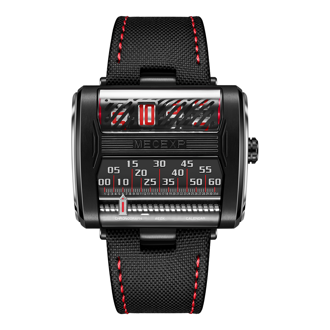 The nylon-and-leather hybrid strap ensures durability with modern comfort. Or go with the leather strap option for a more refined complement. With its industrial refinement and avant-garde presence, the MECEXP MS1002 is not just a watch - it’s a kinetic sculpture for the wrist.