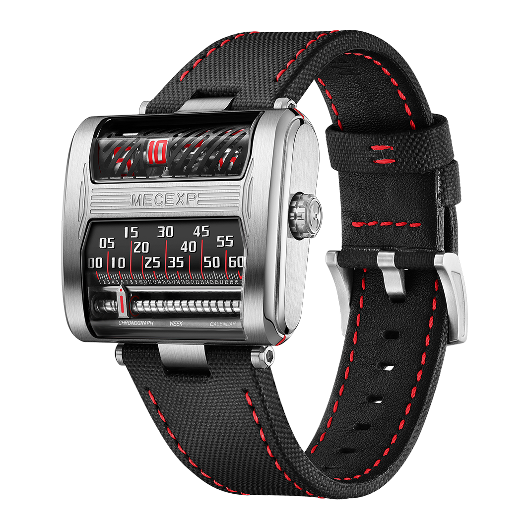 The nylon-and-leather hybrid strap ensures durability with modern comfort. Or go with the leather strap option for a more refined complement. With its industrial refinement and avant-garde presence, the MECEXP MS1002 is not just a watch - it’s a kinetic sculpture for the wrist.