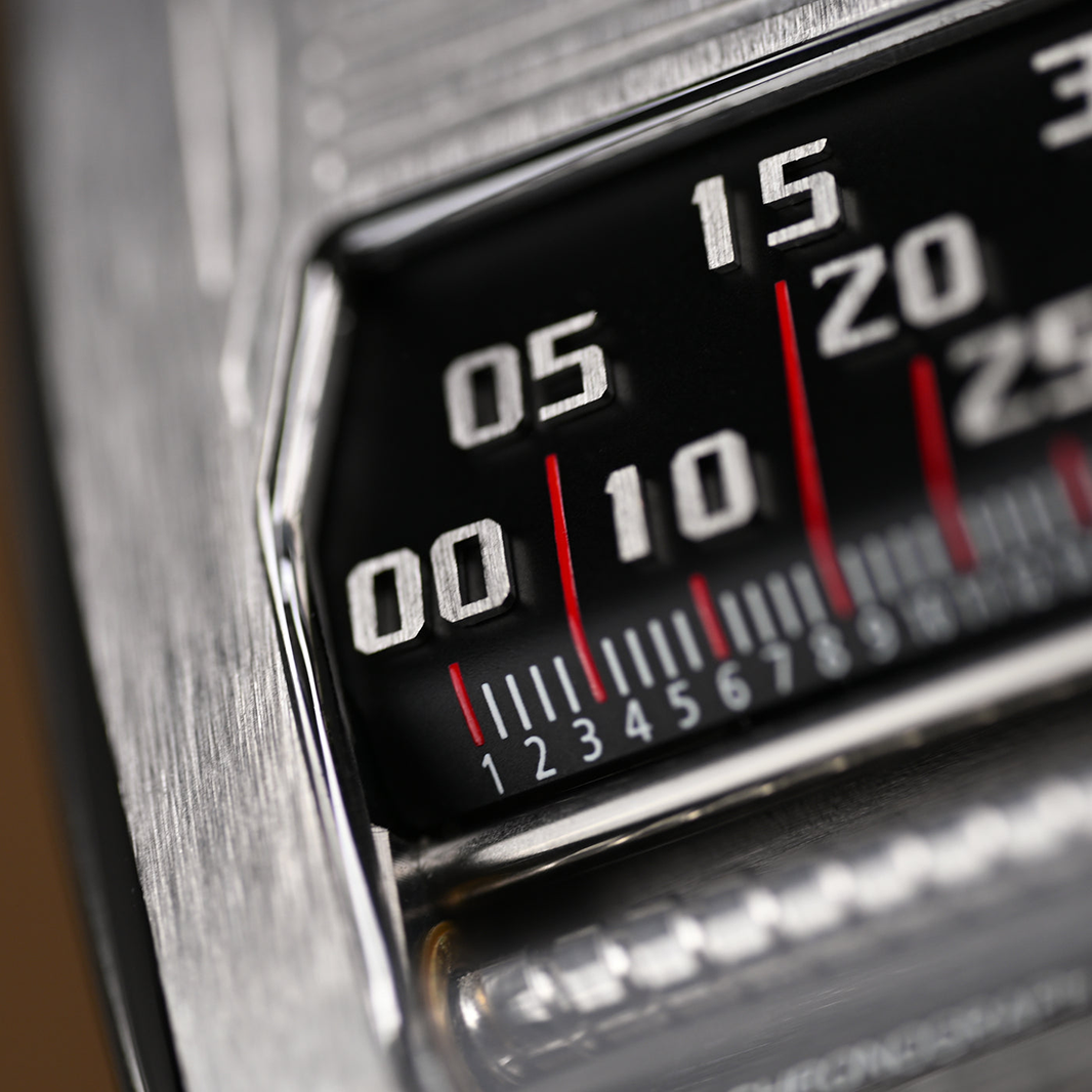 The linear flyback leadscrew translates time into horizontal motion, merging traditional watchmaking principles with modern engineering. Paired with a coaxial reverse-rotating digital display, the MS1002 achieves a futuristic, high-depth time presentation that feels both intuitive and kinetic.