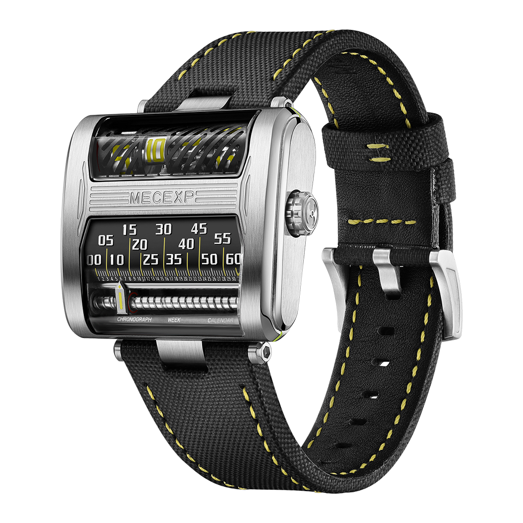 The nylon-and-leather hybrid strap ensures durability with modern comfort. Or go with the leather strap option for a more refined complement. With its industrial refinement and avant-garde presence, the MECEXP MS1002 is not just a watch - it’s a kinetic sculpture for the wrist.