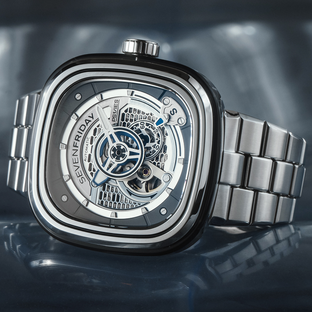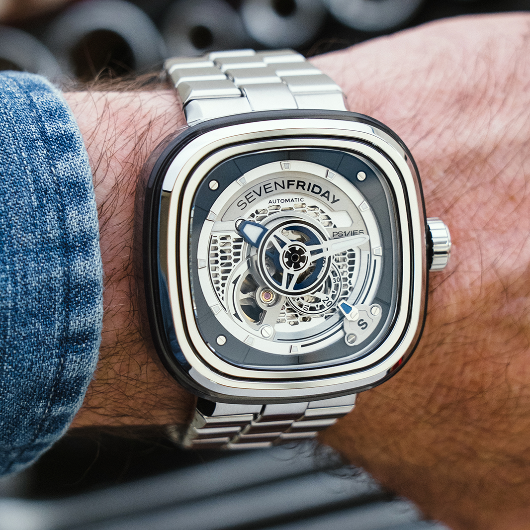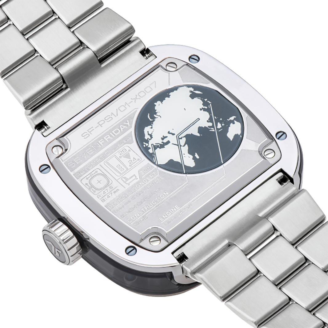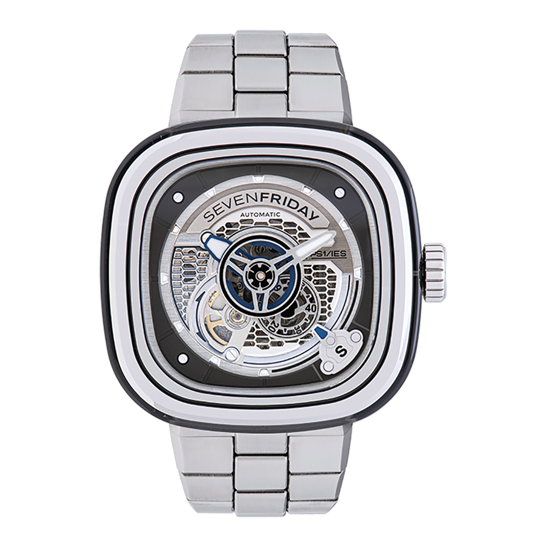 The SEVENEFRIDAY PS1/01M is the timeless PS1/01 with a factory fitted metal bracelet. The metal bracelet has been specifically designed in-house, in order to fit perfectly with SEVENFRIDAY's iconic case in terms of style, quality and comfort. The addition of the stainless steel bracelet to the SEVENFRIDAY PS1/01 turns it into a definitive statement piece.