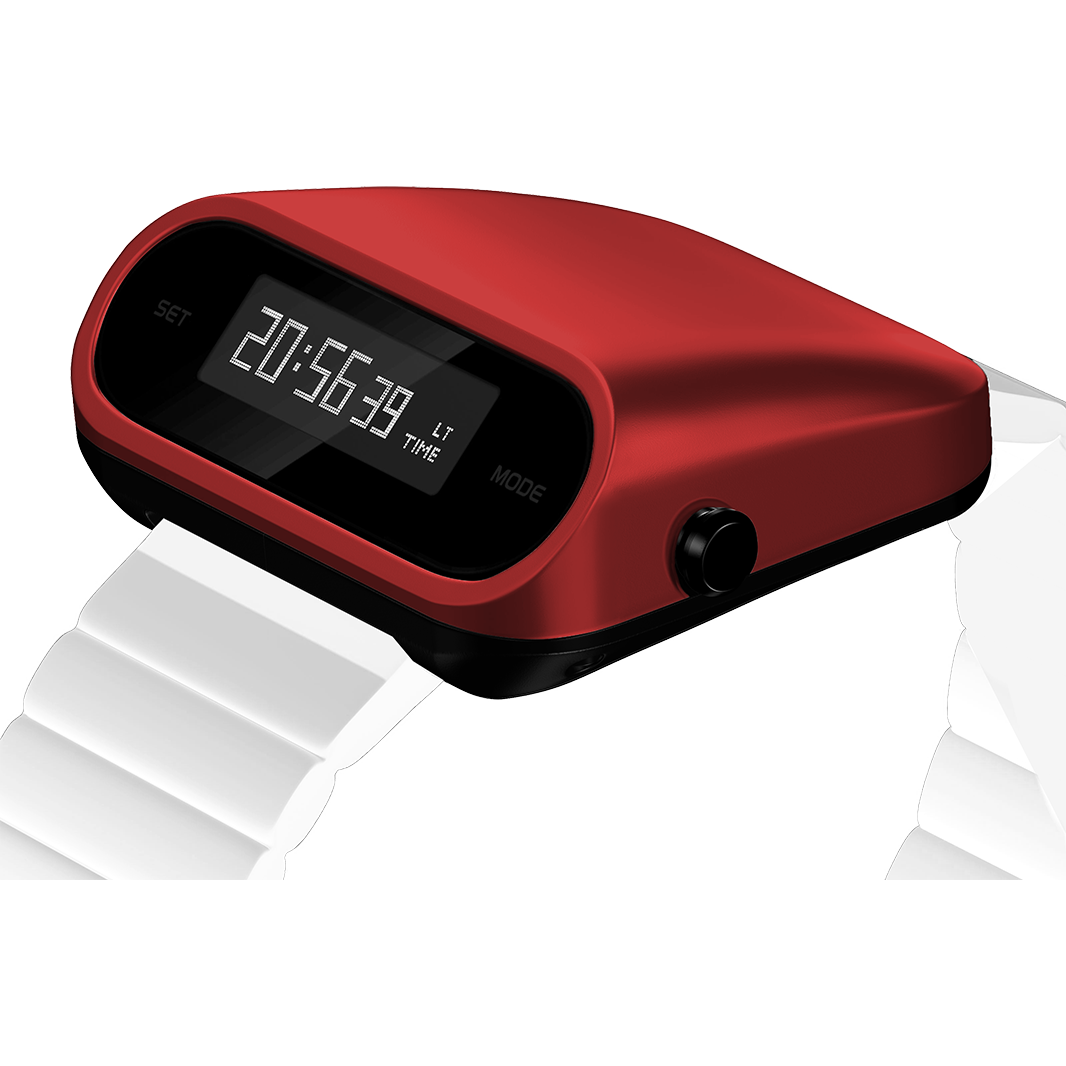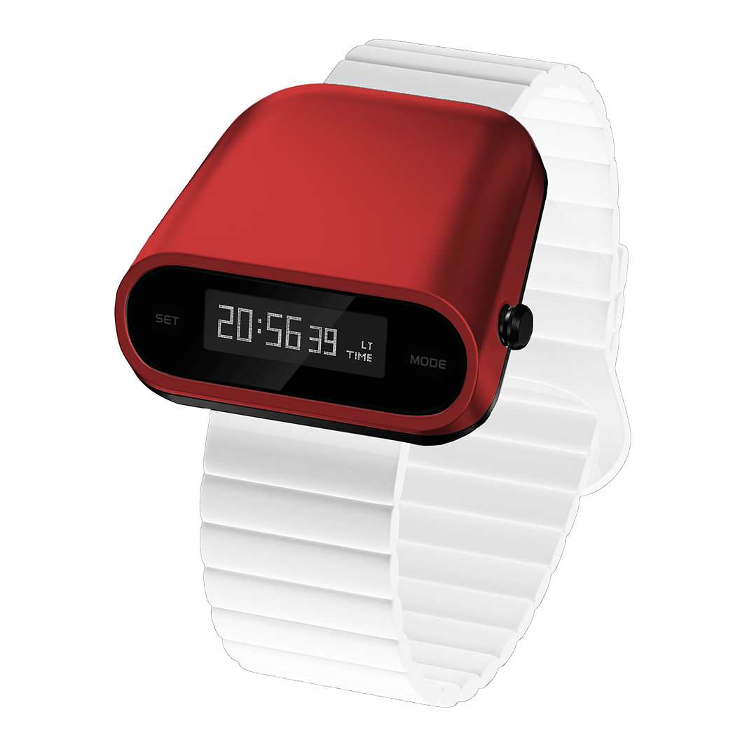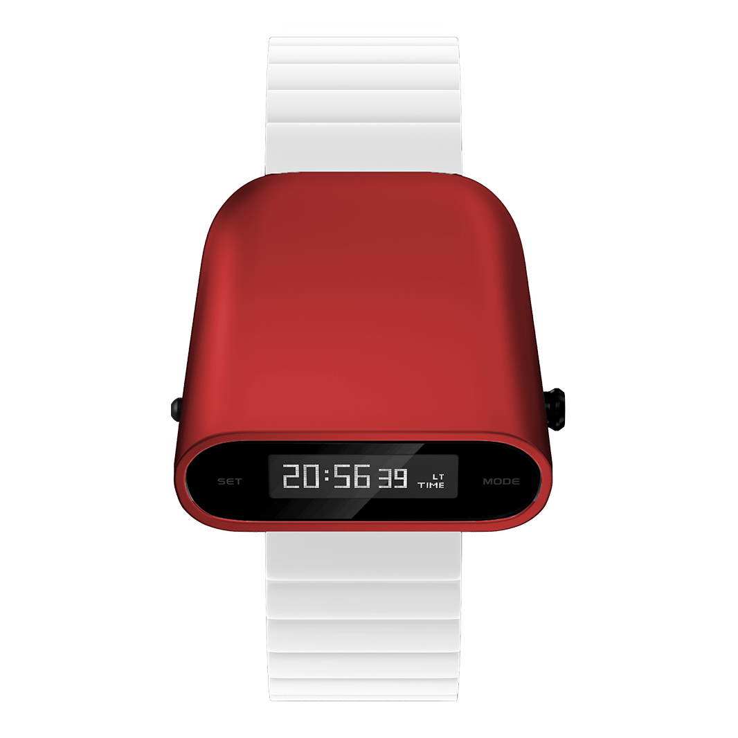 The SG60 blends neo-vintage design with cutting-edge digital functionality, drawing inspiration from iconic timepieces of the 1960s and 1970s - think Girard-Perregaux Casquette, Amida Digitrend, Bulova Computron, and Mido Swissonic. Housed in a vibrant anodized red aluminum case, the wedge-shaped design offers a unique side-read LED display that feels both retro and ahead of its time.