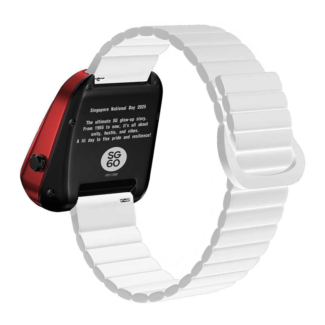 Only 388 individually numbered SG60 watches will ever be made. Each comes in a sleek, custom-designed red travel pod - a nod to Singapore’s beloved nickname, “The Little Red Dot”. Inside, you’ll find two interchangeable magnetic rubber straps in: