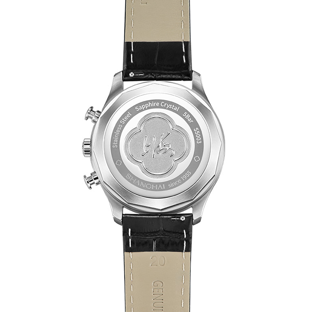 The crown features a refined anti-slip texture, ensuring a secure grip and comfortable handling. Designed for ease of adjustment, it reflects Shanghai Watches’ thoughtful approach to blending practicality with refined craftsmanship; a quiet detail that enhances everyday interaction with the watch.