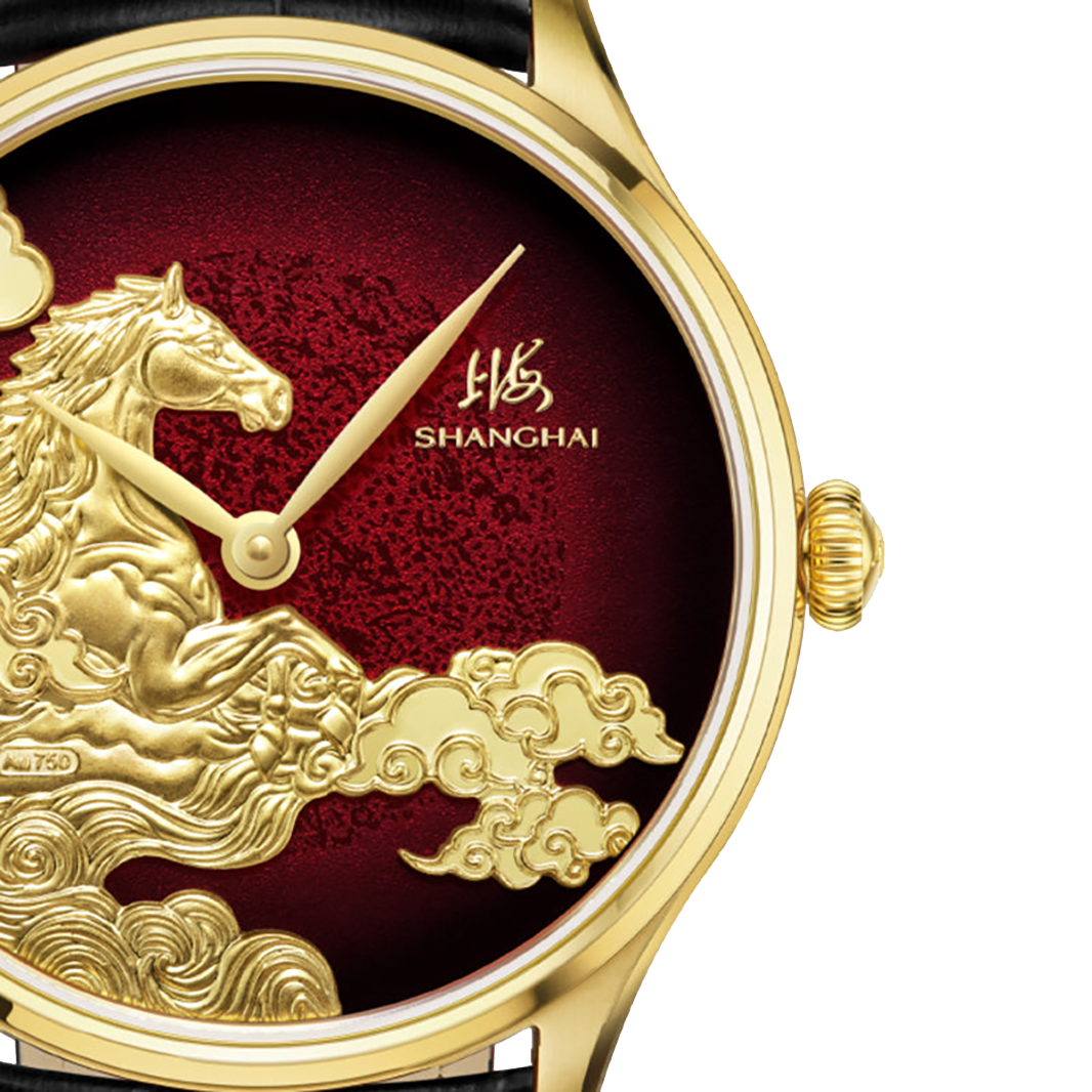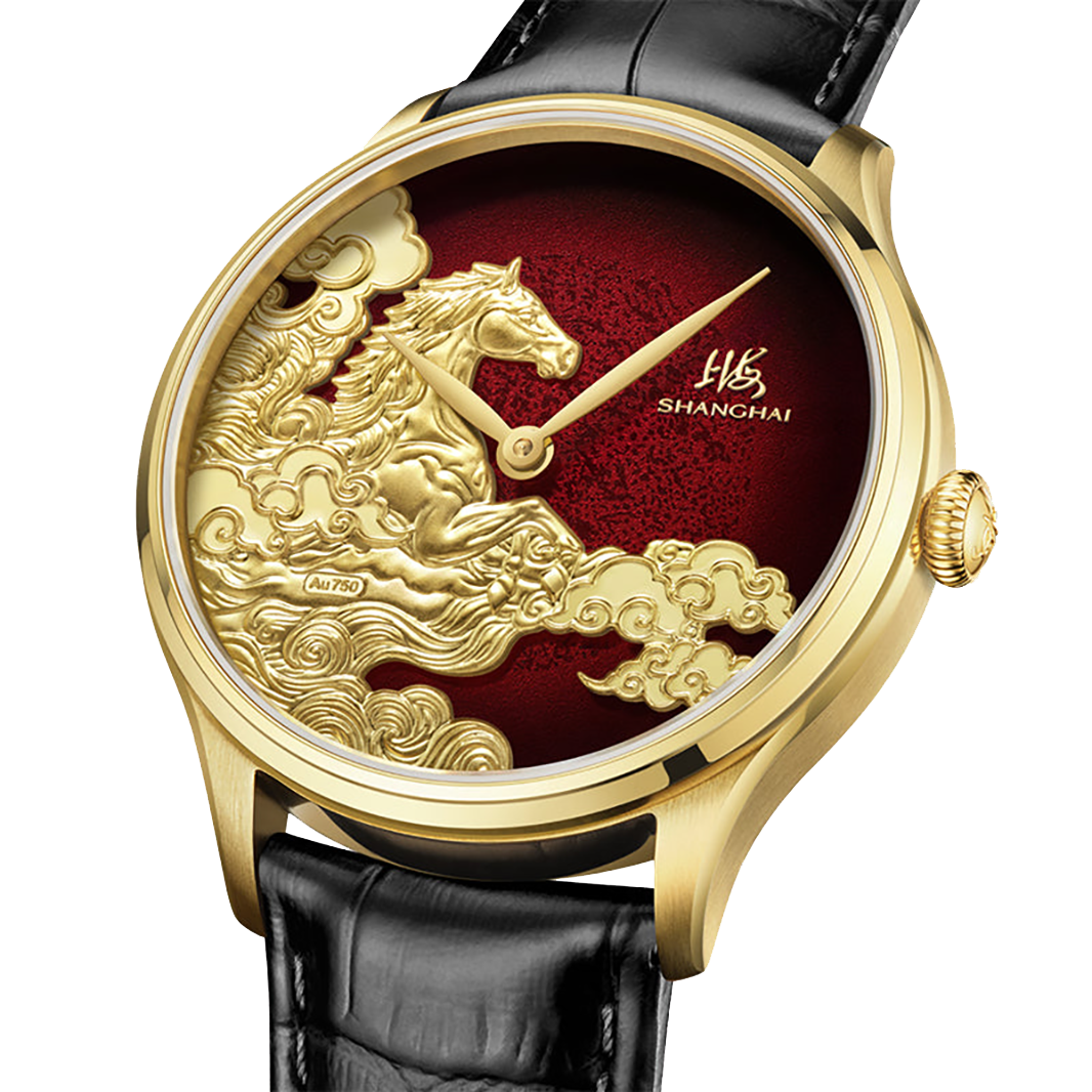 Inspired by the celestial horse - a symbol of strength, momentum, and boundless destiny - the Shanghai Auspicious Steeds 40mm Red Dial captures the spirit of fearless progress in sculptural form. Limited to just 999 pieces, this edition unites traditional gold relief engraving with contemporary mechanical watchmaking.