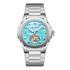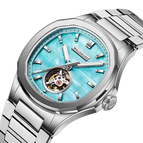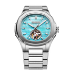 The design is inspired by a legendary Swiss design, but in proportions that are more compatible with everyday use, such as a slimmer case, thinner bezel and shorter lugs.