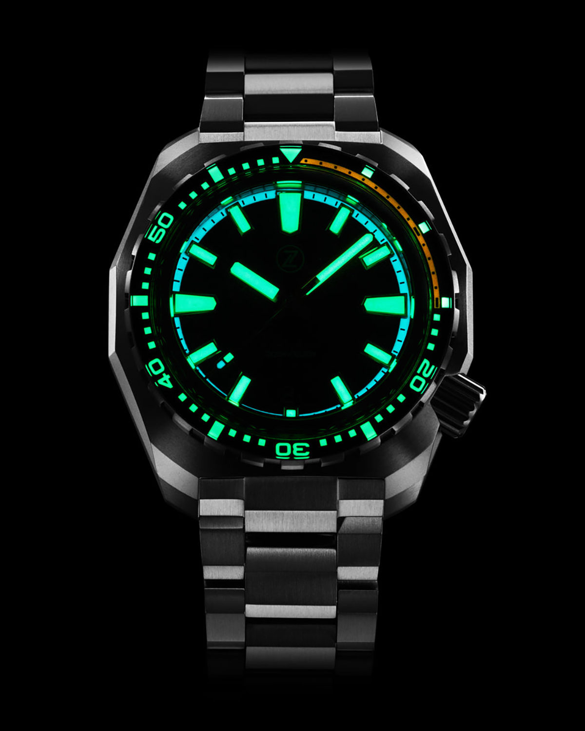 Zelos updates this format with more angular case lines and a faceted profile, giving the watch a more modern stance. The case and bracelet are designed to flow together visually, creating a cohesive and assertive look on the wrist. Despite its size, the relatively short lug-to-lug length helps it wear more compactly than expected.